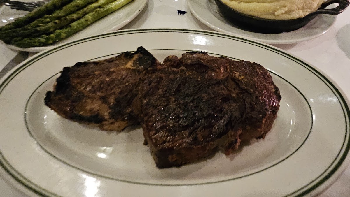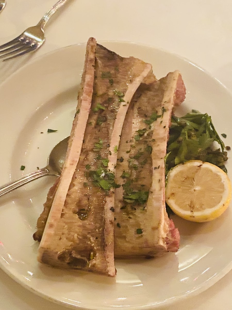 Upon entering, you’ll be greeted by an elegant atmosphere adorned with rich oak accents and crisp white tablecloths. A striking golden bull stands majestically in the center of the dining room, setting the ambiance for a memorable evening. The mood is sophisticated yet welcoming, making it perfect for both intimate dinners and celebratory gatherings.