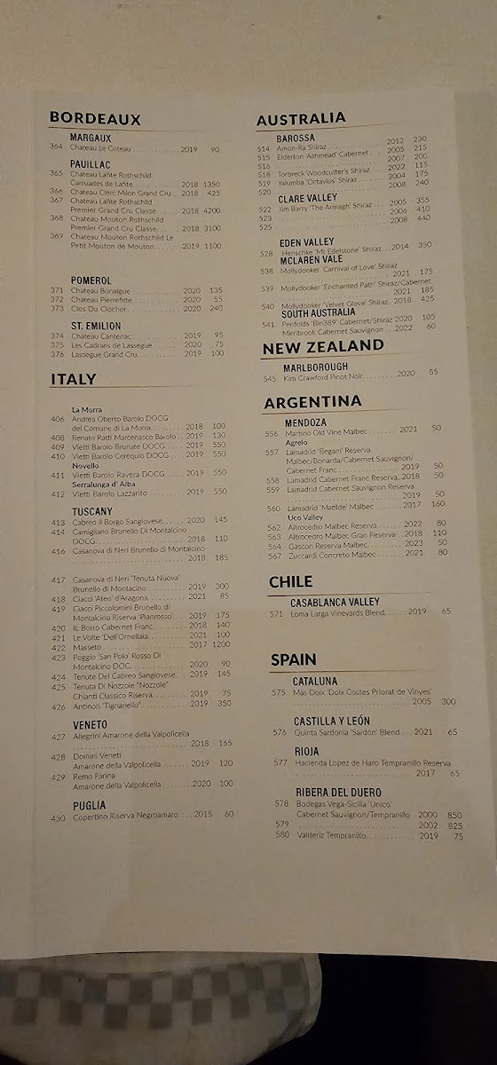 Golden Steer Steakhouse Las Vegas Menu
