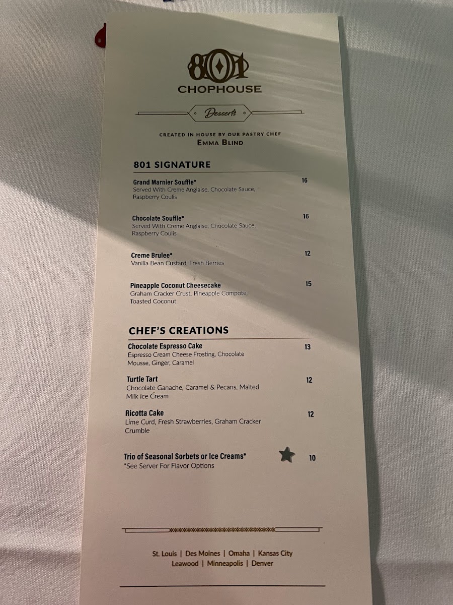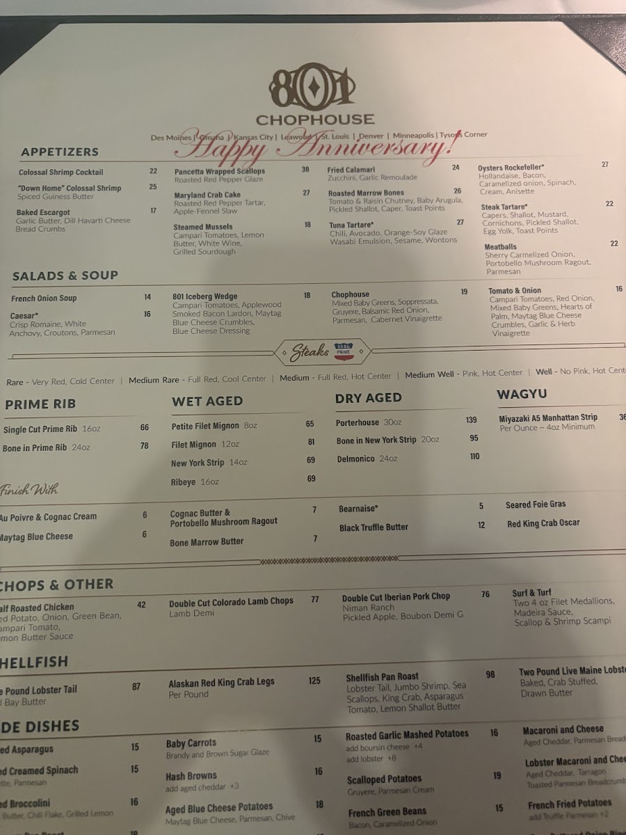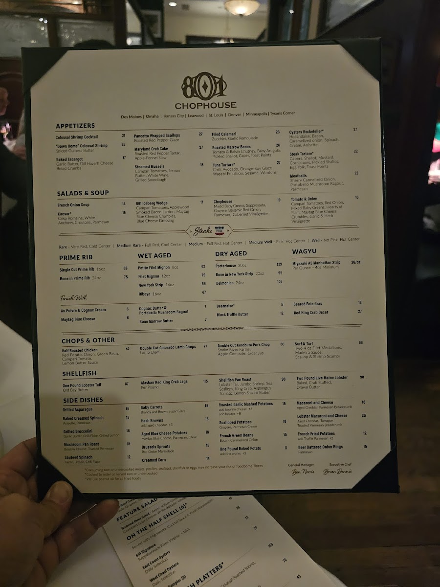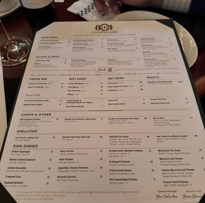 801 Chophouse Menu