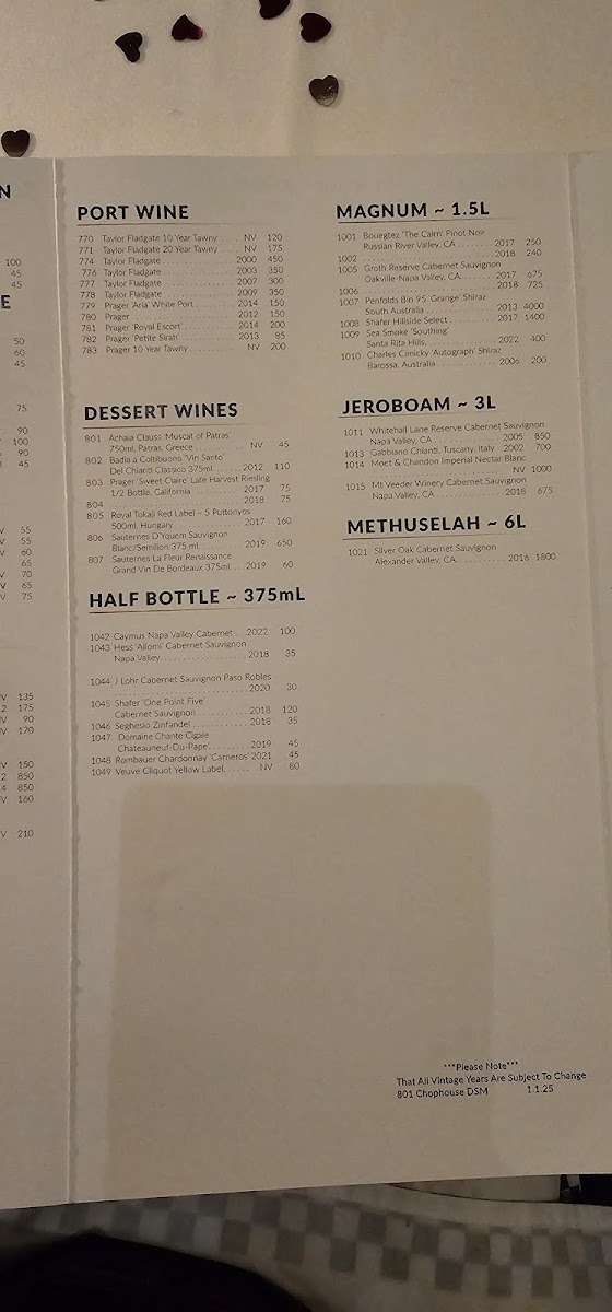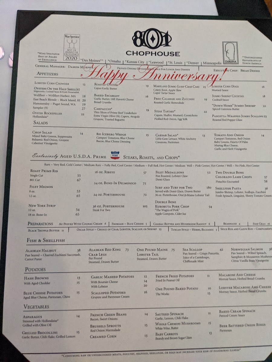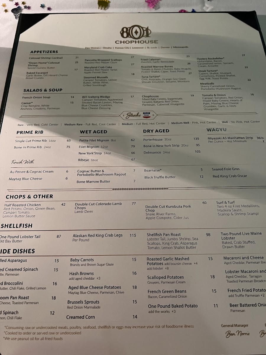 801 Chophouse Menu